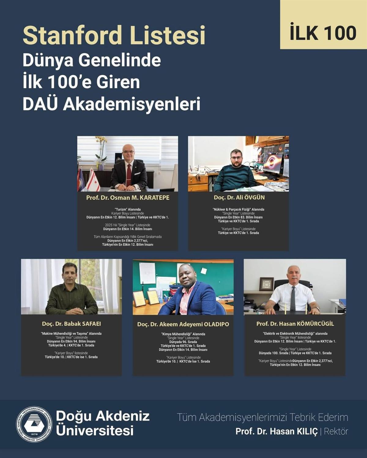 Our faculty member Prof. Hasan Kömürcügil has been listed among the top 100 researchers in his field